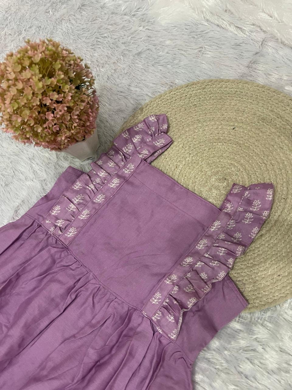 Lavender Cotton Frock with Ruffle Straps | Handcrafted Kids Dress